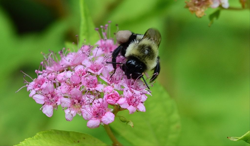 Download 1024x600 bee, bumblebee, flower, plant, macro wallpaper, background netbook, tablet