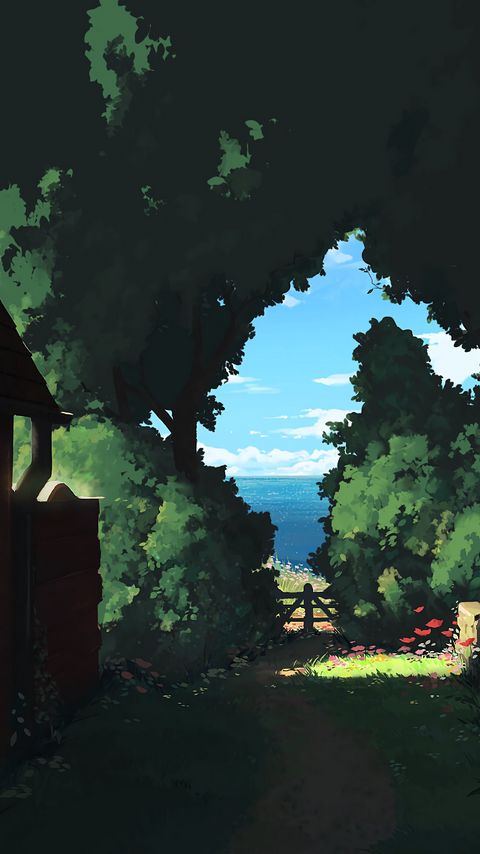 Download 480x854 bushes, flowers, sea, path, art wallpaper, background nokia lumia 630, sony ericsson xperia