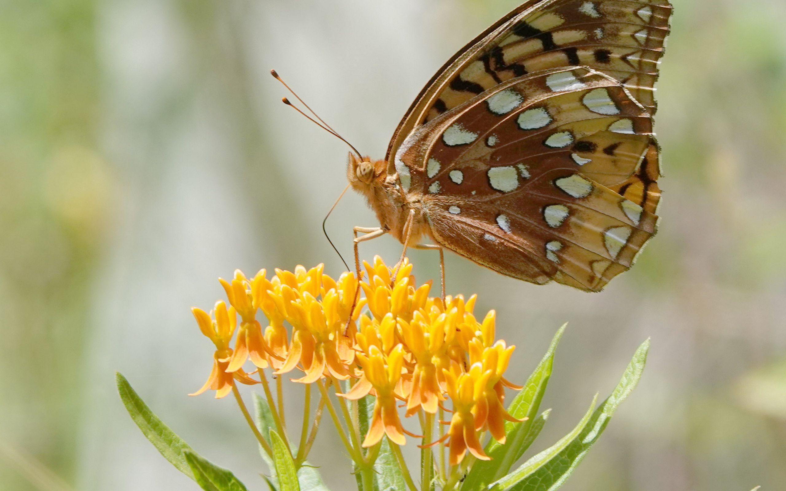 Download 2560x1600 butterfly, flowers, leaves, petals, macro wallpaper, background widescreen 16:10