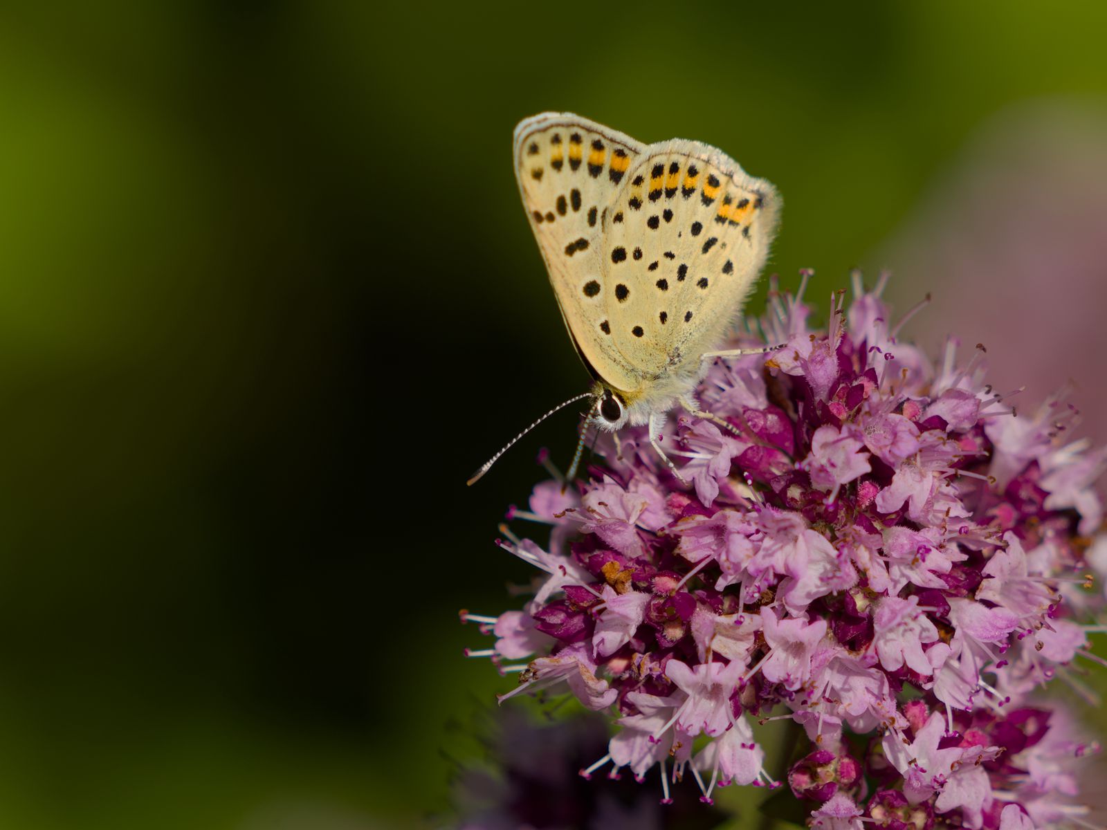 Download 1600x1200 butterfly, flowers, petals, macro, pink wallpaper, background standard 4:3