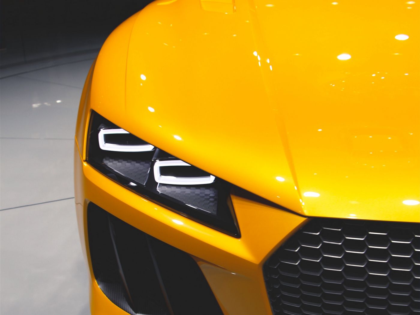 Download 1400x1050 car, sports car, headlight, yellow, front view wallpaper, background standard 4:3