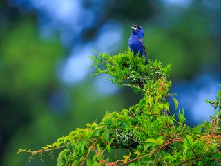Download 320x240 cardinal, bird, blue, leaves, branches, blur wallpaper, background nokia e72, e71, asha, alcatel onetouch