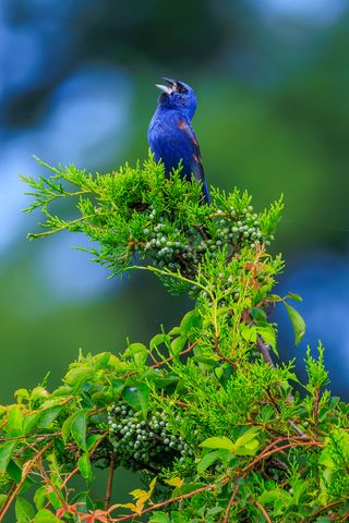Download 320x480 cardinal, bird, blue, leaves, branches, blur wallpaper, background samsung galaxy ace gt-s5830, sony xperia e, miro, htc wildfire s, c, lg optimus