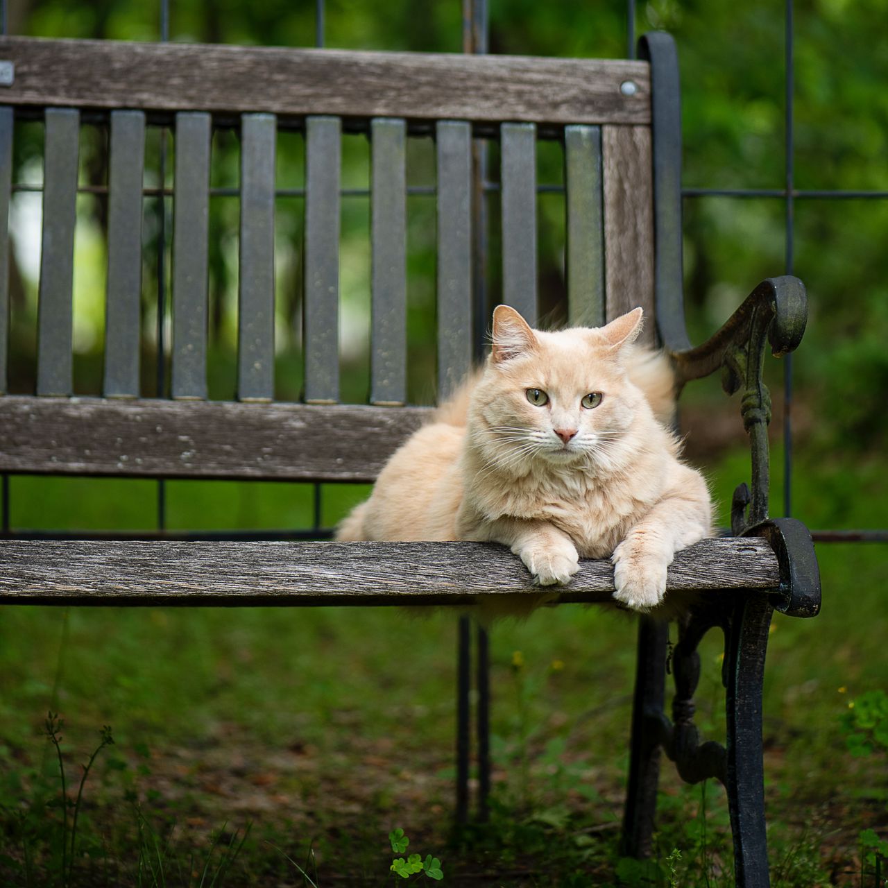 Download 1280x1280 cat, fluffy, bench, pet, animal wallpaper, background ipad, ipad 2, ipad mini for parallax
