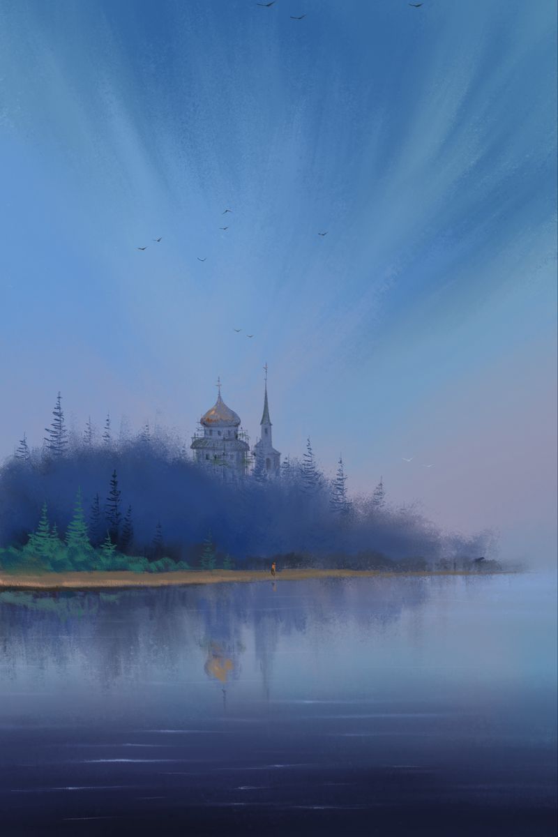 Download 800x1200 church, island, sea, art wallpaper, background iphone 4s/4 for parallax