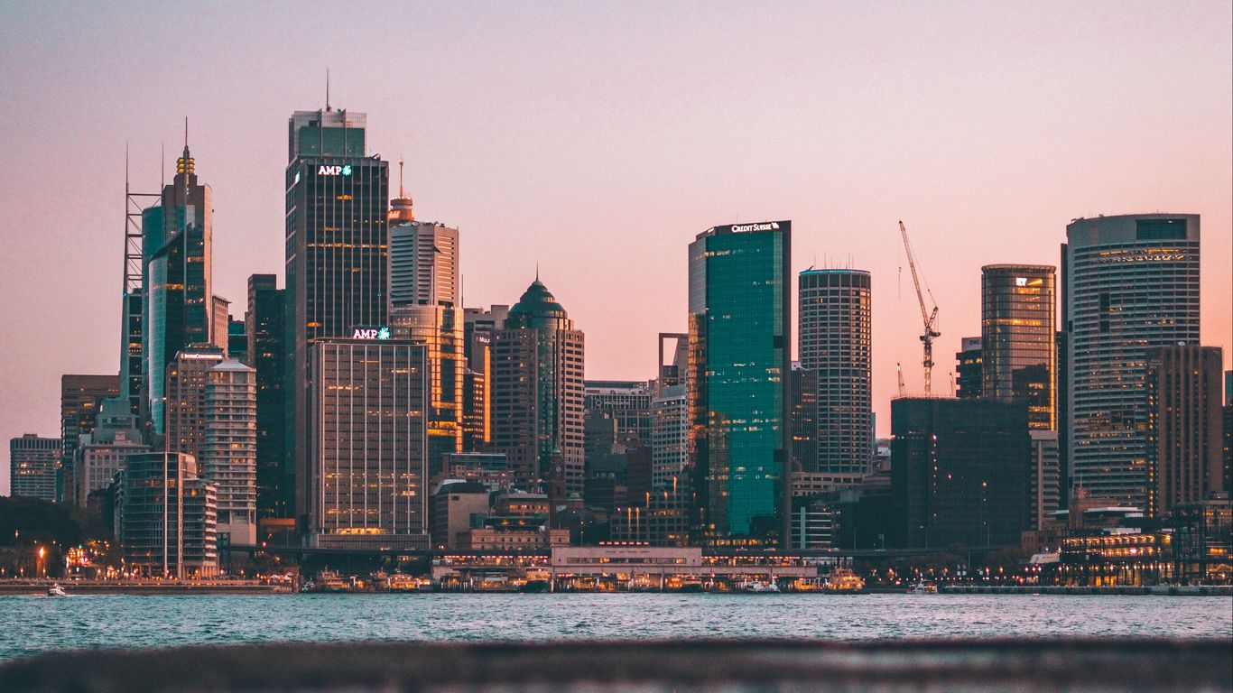 Download 1366x768 city, sunset, panorama, australia wallpaper, background tablet, laptop