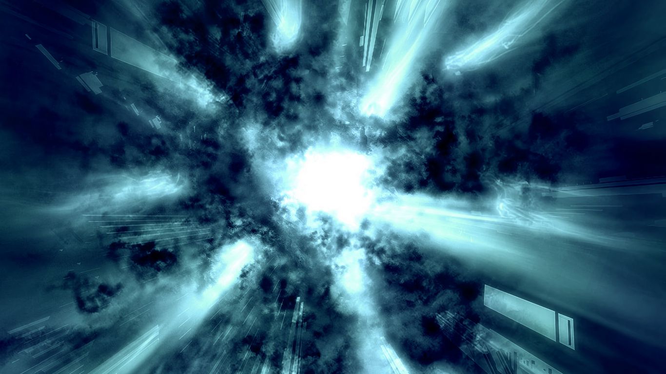 Download 1366x768 cloud, rays, light, explosion, abstraction, blue wallpaper, background tablet, laptop