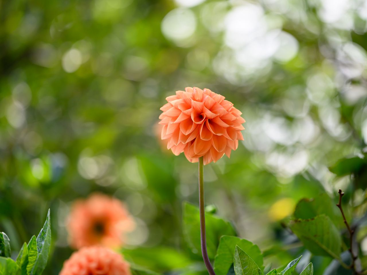 Download 1280x960 dahlias, flowers, garden, leaves wallpaper, background standard 4:3