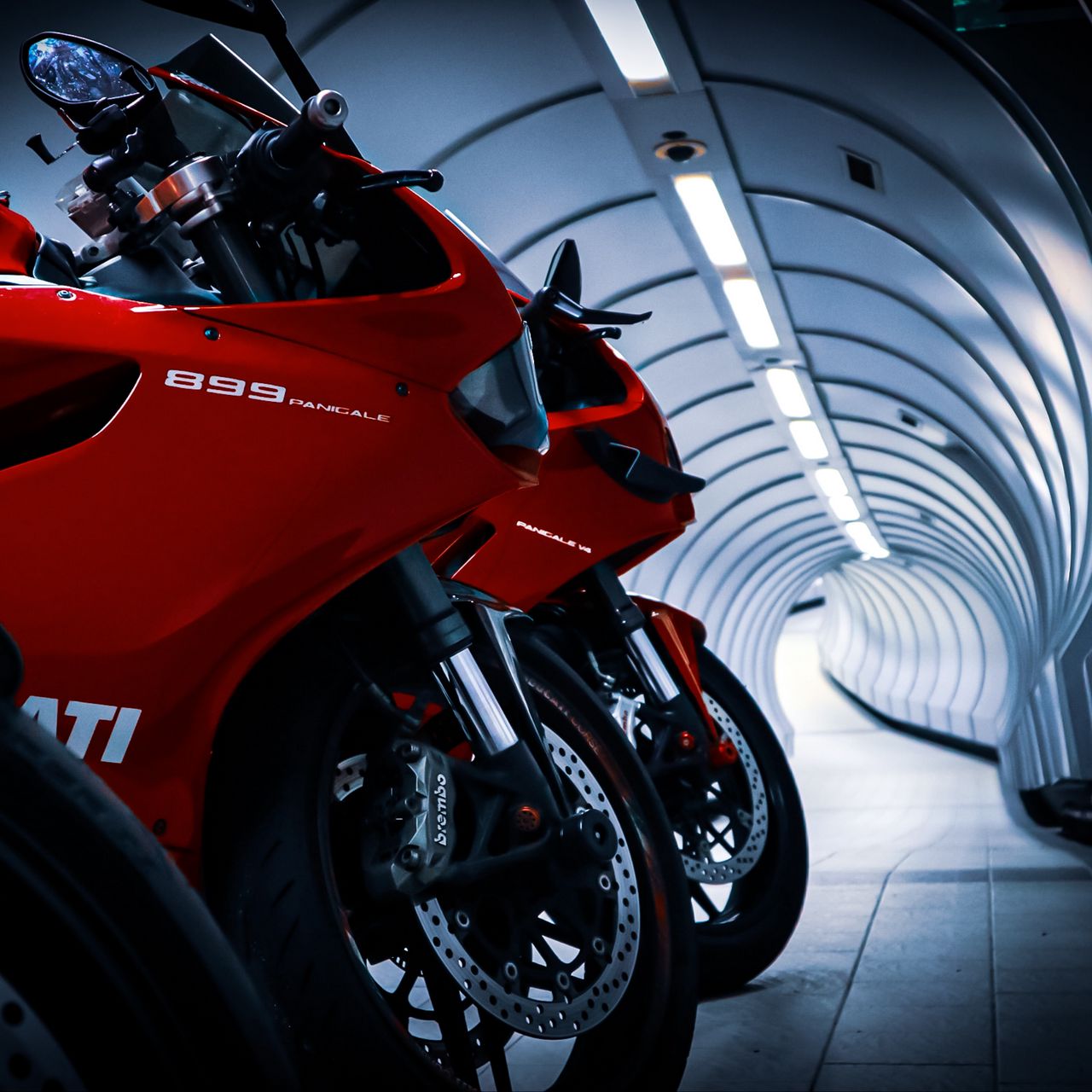 Download 1280x1280 ducati, motorcycles, red, tunnel wallpaper, background ipad, ipad 2, ipad mini for parallax