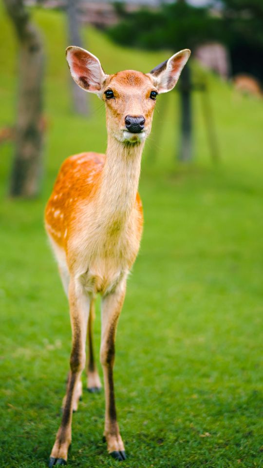 Download 540x960 fawn, baby, lawn, grass, wildlife wallpaper, background samsung galaxy s4 mini, microsoft lumia 535, philips xenium, lg l90, htc sensation