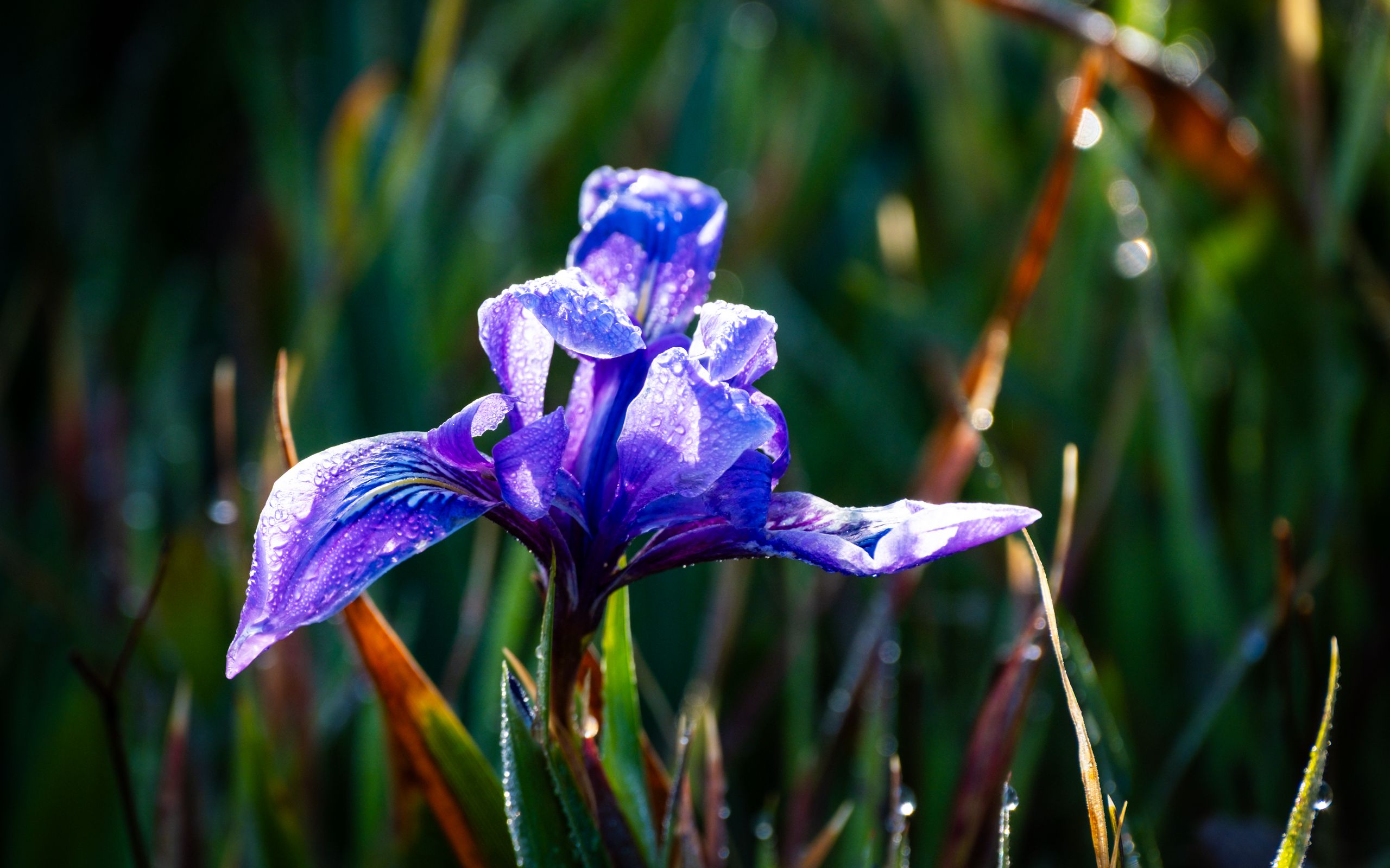 Download 2560x1600 flower, iris, nature, macro, drops wallpaper, background widescreen 16:10