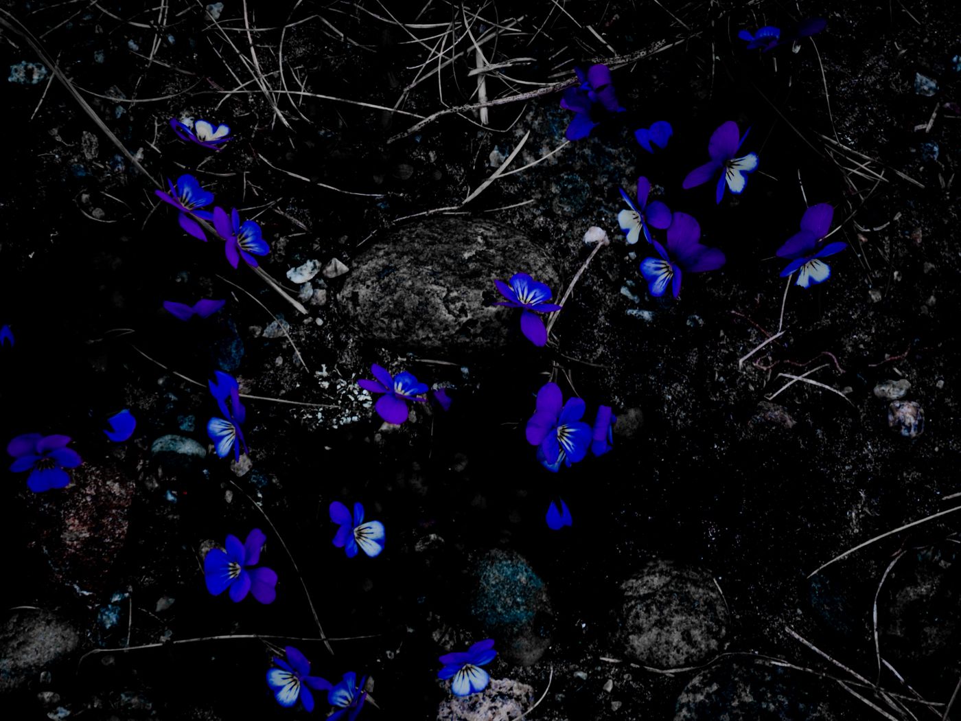 Download 1400x1050 flowers, contrast, stones, branches, flowering wallpaper, background standard 4:3