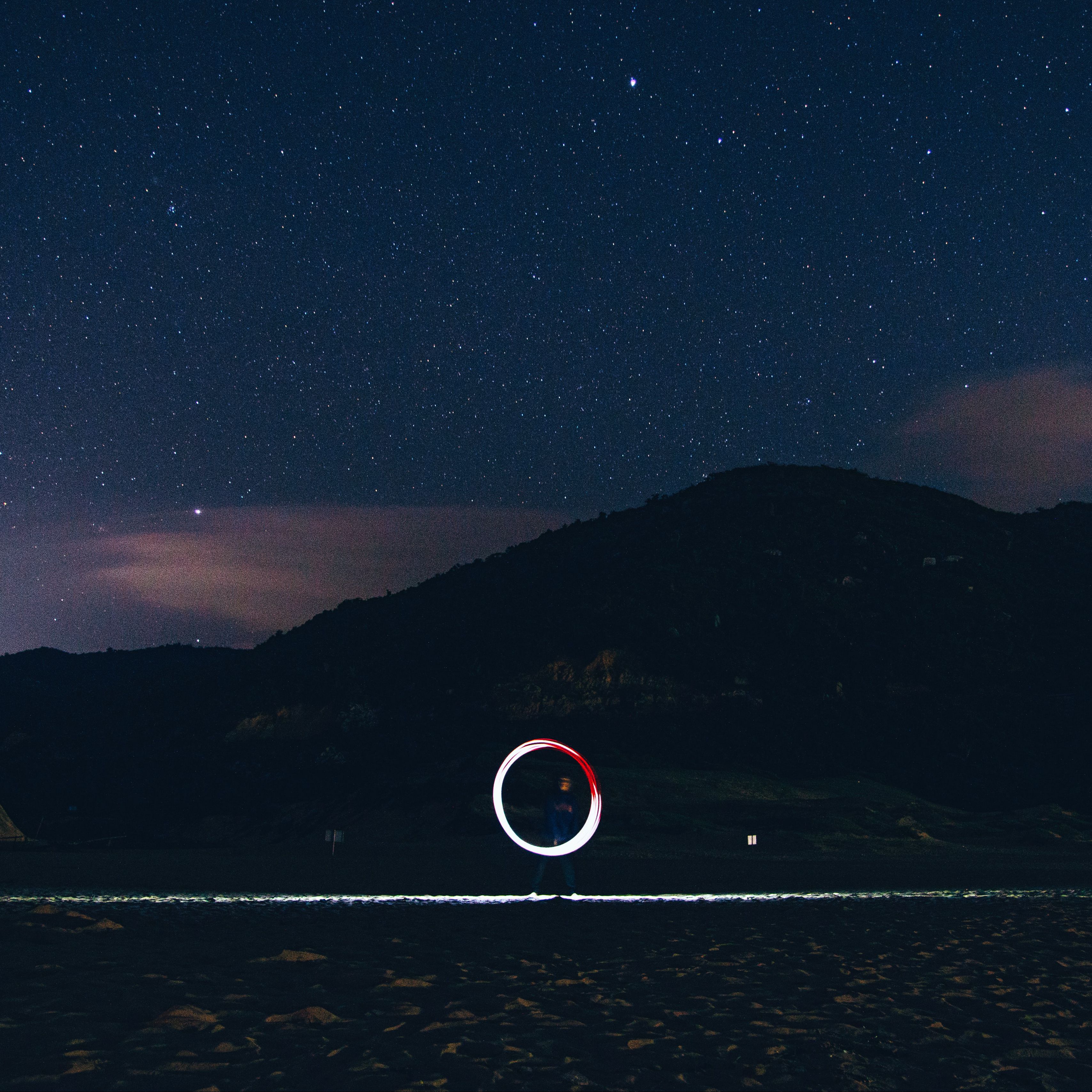 Download 3415x3415 freezelight, circle, glow, hill, starry sky, stars wallpaper, background ipad pro 12.9" retina for parallax