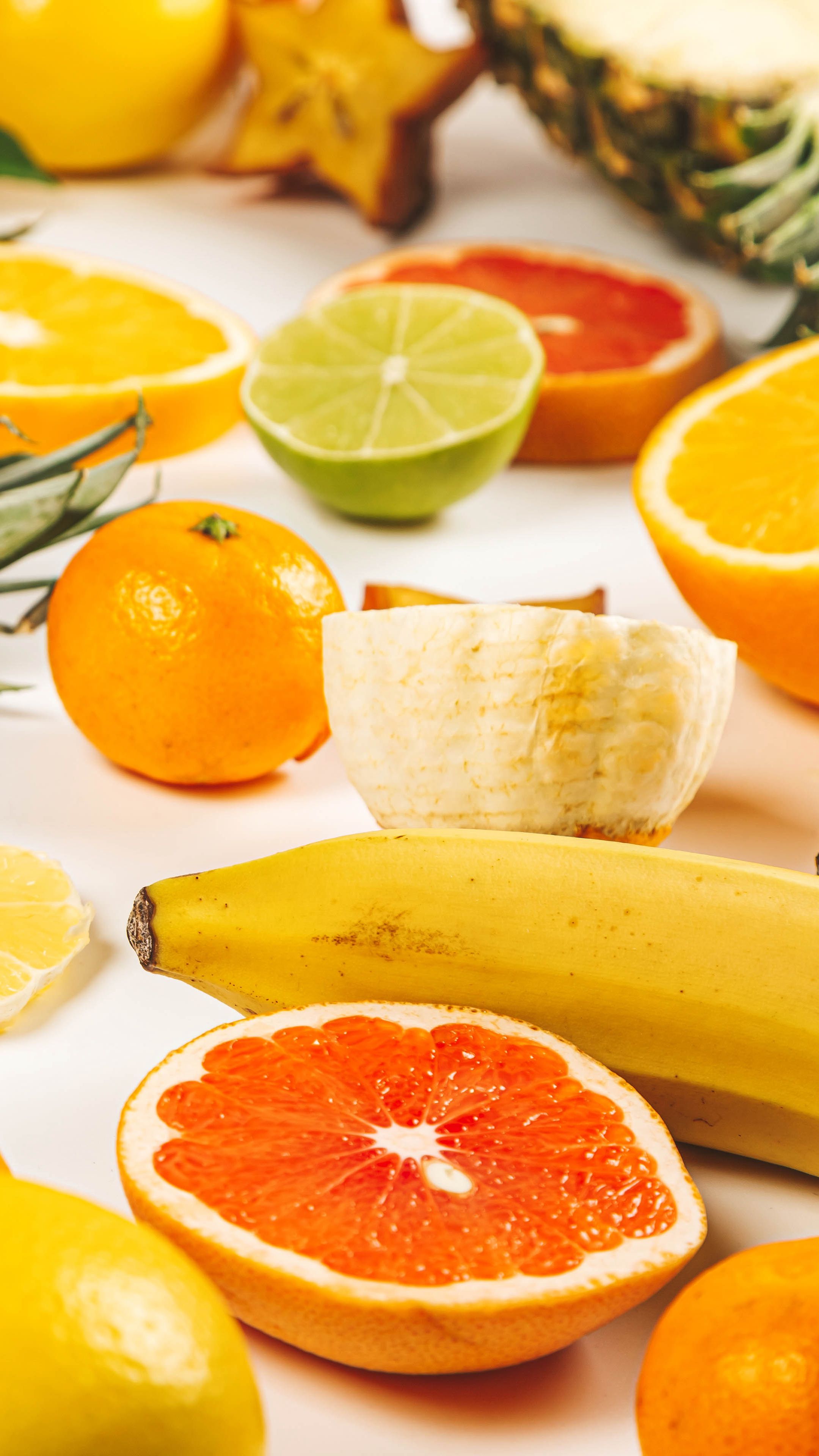 Download 2160x3840 fruit, orange, banana, lemon, pineapple wallpaper, background samsung galaxy s4, s5, note, sony xperia z, z1, z2, z3, htc one, lenovo vibe