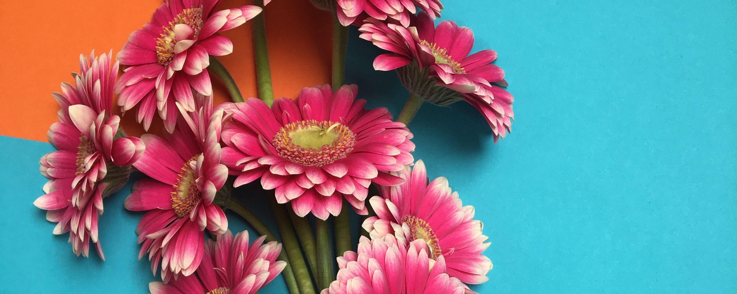 Download 2560x1024 gerbera, flowers, bouquet, petals wallpaper, background ultrawide monitor