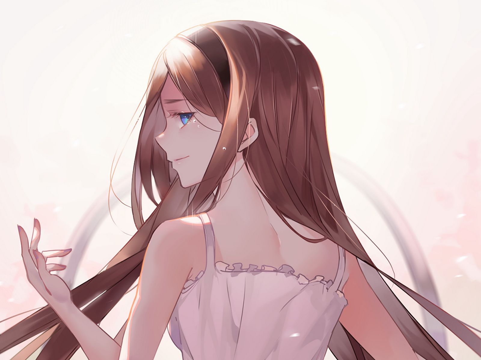 Download 1600x1200 girl, dress, anime, art, cartoon wallpaper, background standard 4:3