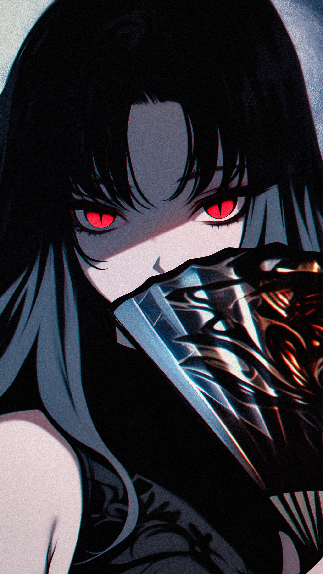 Download 1350x2400 girl, fan, bangs, anime, art wallpaper, background iphone 8+/7+/6s+/6+ for parallax