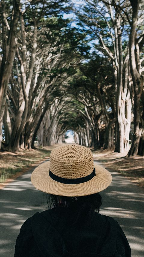 Download 480x854 girl, hat, road, trees, aesthetics wallpaper, background nokia lumia 630, sony ericsson xperia