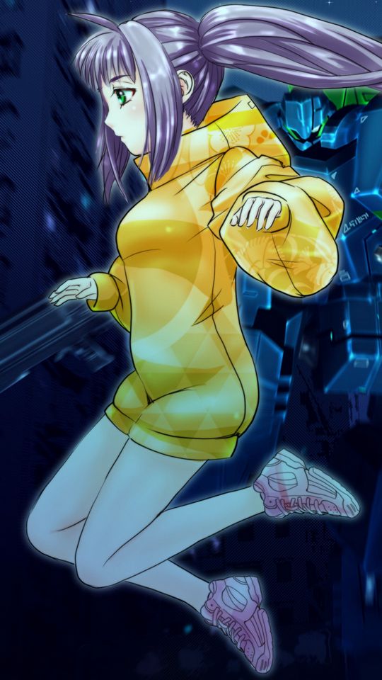 Download 540x960 girl, hoodie, anime, yellow, purple wallpaper, background samsung galaxy s4 mini, microsoft lumia 535, philips xenium, lg l90, htc sensation