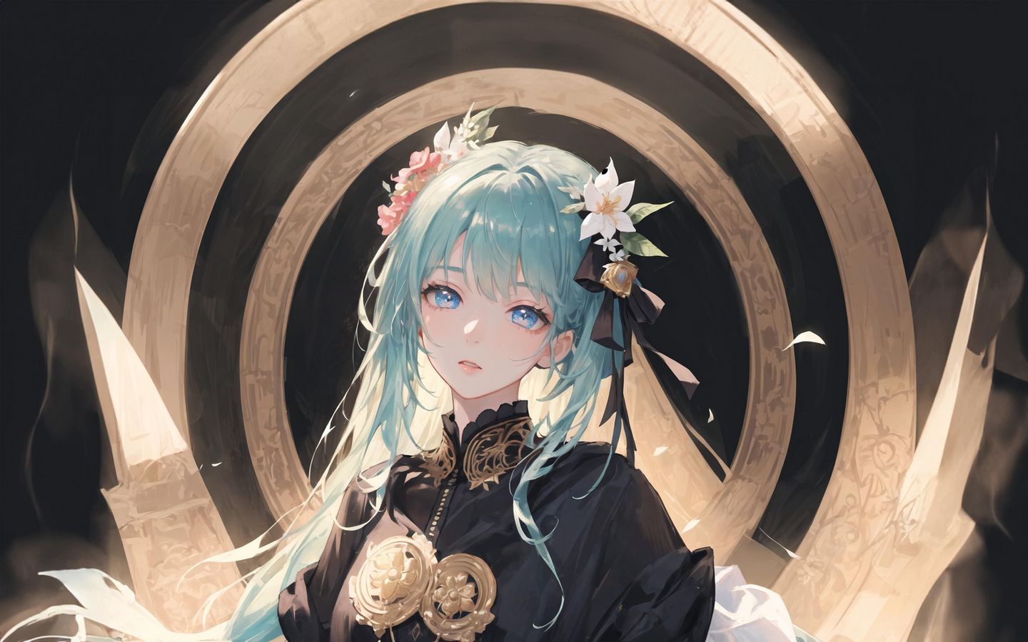 Download 1440x900 girl, jewelry, dress, hair, anime wallpaper, background widescreen 16:10