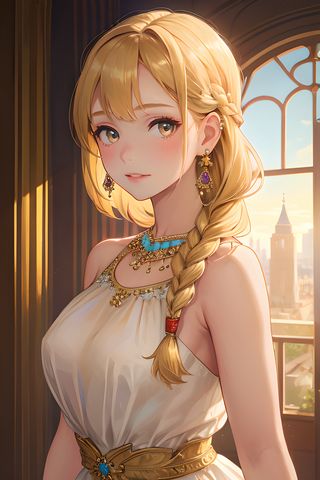 Download 320x480 girl, jewelry, dress, window, anime, art wallpaper, background samsung galaxy ace gt-s5830, sony xperia e, miro, htc wildfire s, c, lg optimus