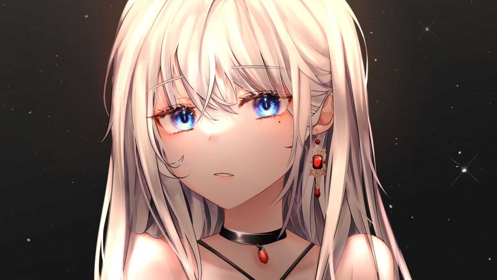 Download 1600x900 girl, jewelry, dress, anime wallpaper, background widescreen 16:9