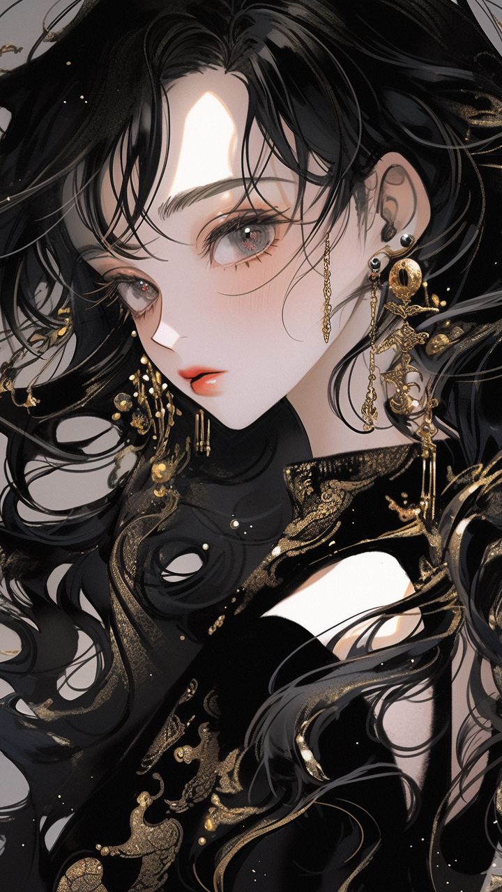 Download 720x1280 girl, jewelry, dress, anime, black wallpaper, background samsung galaxy mini s3, s5, neo, alpha, sony xperia compact z1, z2, z3, asus zenfone