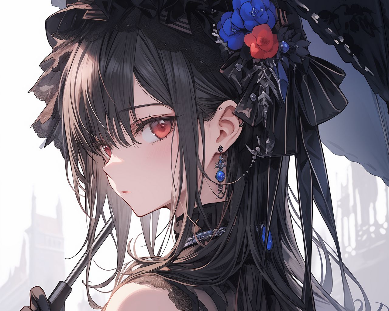 Download 1280x1024 girl, jewelry, umbrella, anime wallpaper, background standard 5:4
