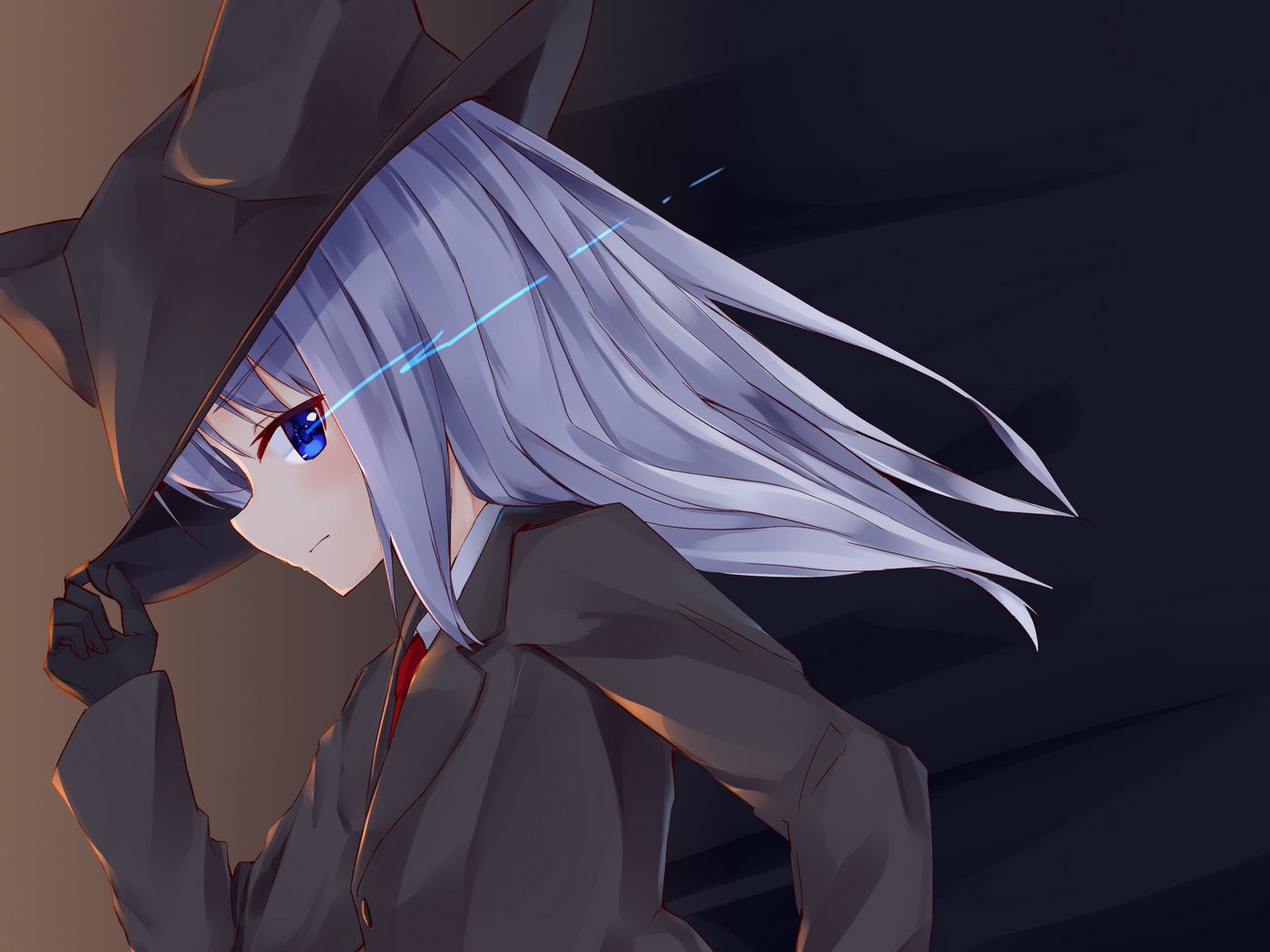 Download 1400x1050 girl, neko, hat, lightning, anime wallpaper, background standard 4:3