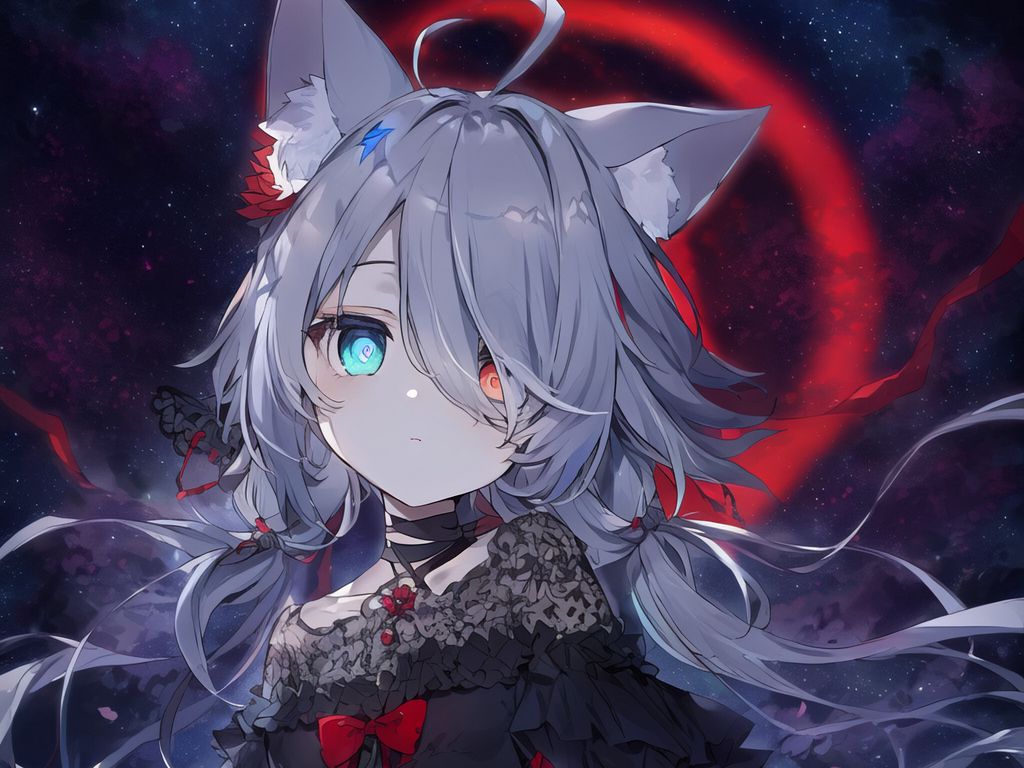 Download 1024x768 girl, neko, heterochromia, anime, art, dress wallpaper, background standard 4:3