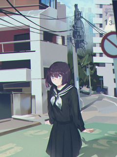 Download 240x320 girl, schoolgirl, street, anime wallpaper, background old mobile, cell phone, smartphone