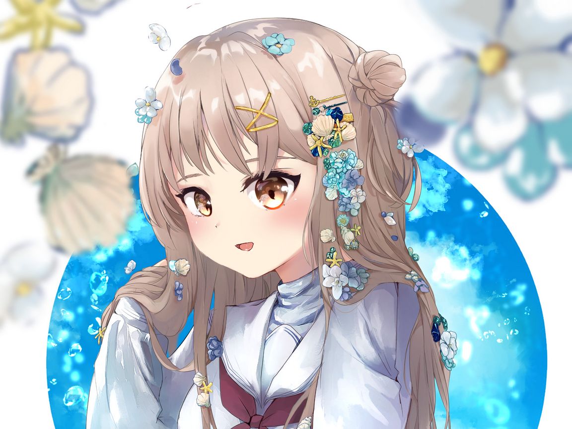 Download 1152x864 girl, smile, flowers, jewelry, anime, art wallpaper, background standard 4:3