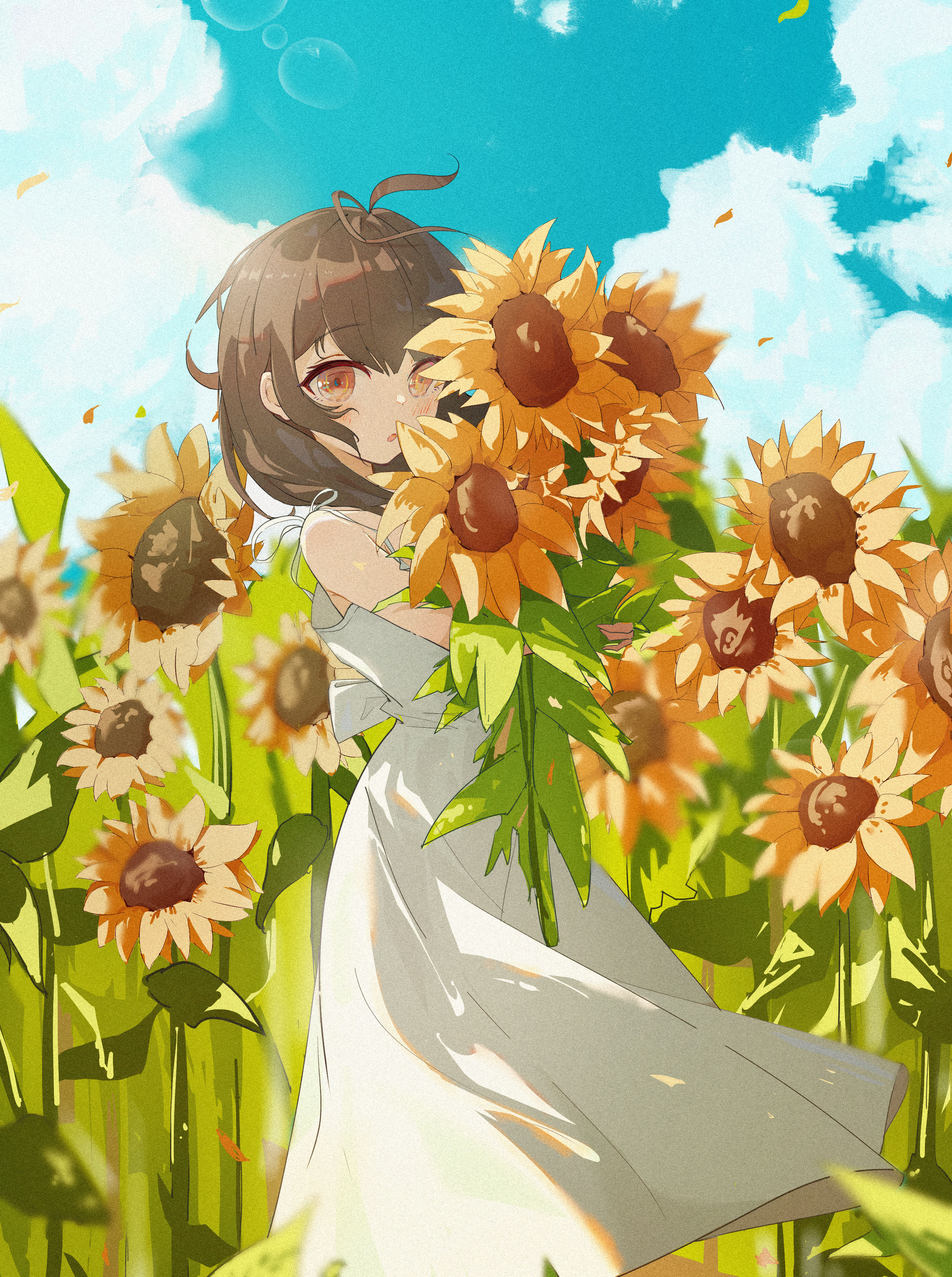Download 2738x3671 girl, sunflowers, anime wallpaper, background