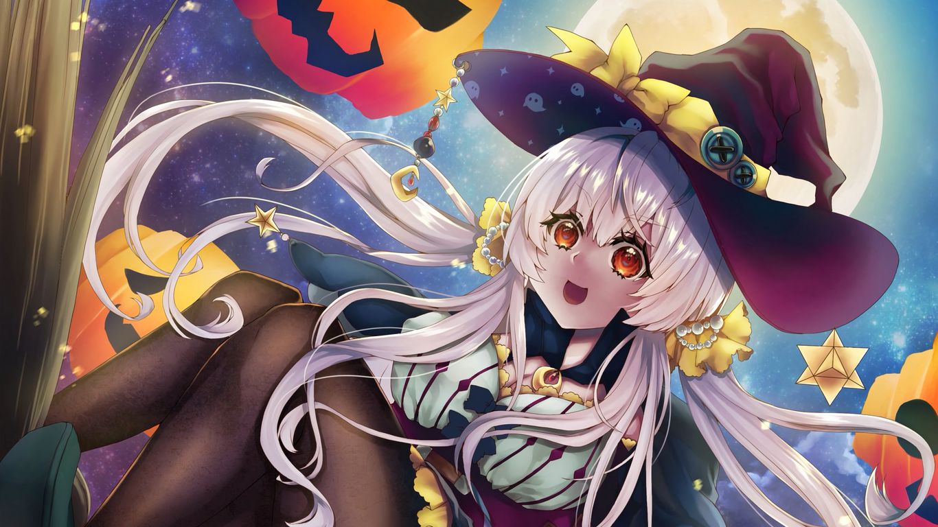 Download 1366x768 girl, witch, smile, hat, anime wallpaper, background tablet, laptop