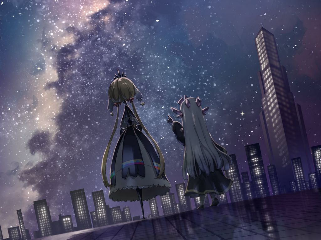 Download 1024x768 girls, princesses, stars, buildings, anime wallpaper, background standard 4:3