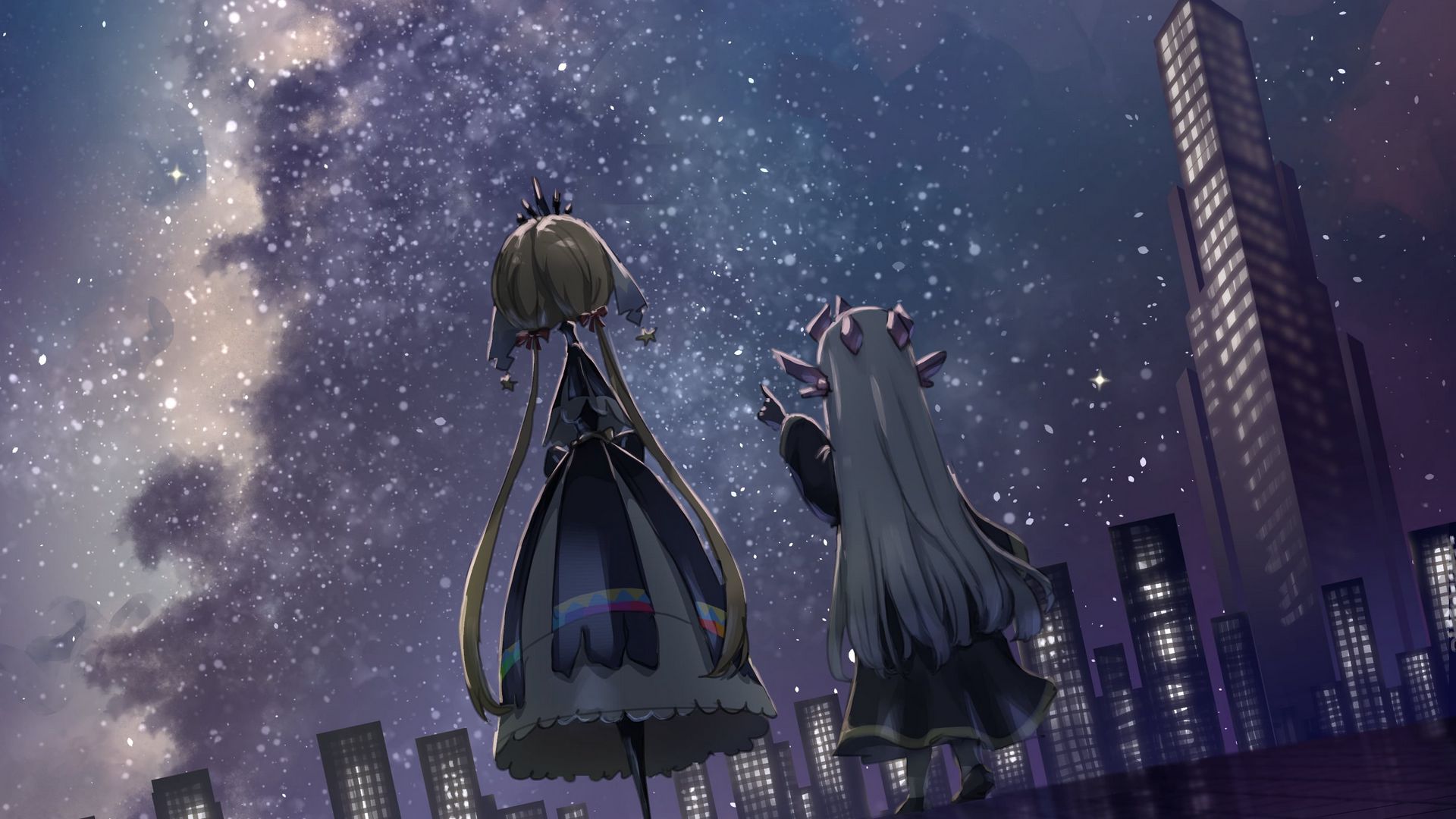 Download 1920x1080 girls, princesses, stars, buildings, anime wallpaper, background full hd, hdtv, fhd, 1080p