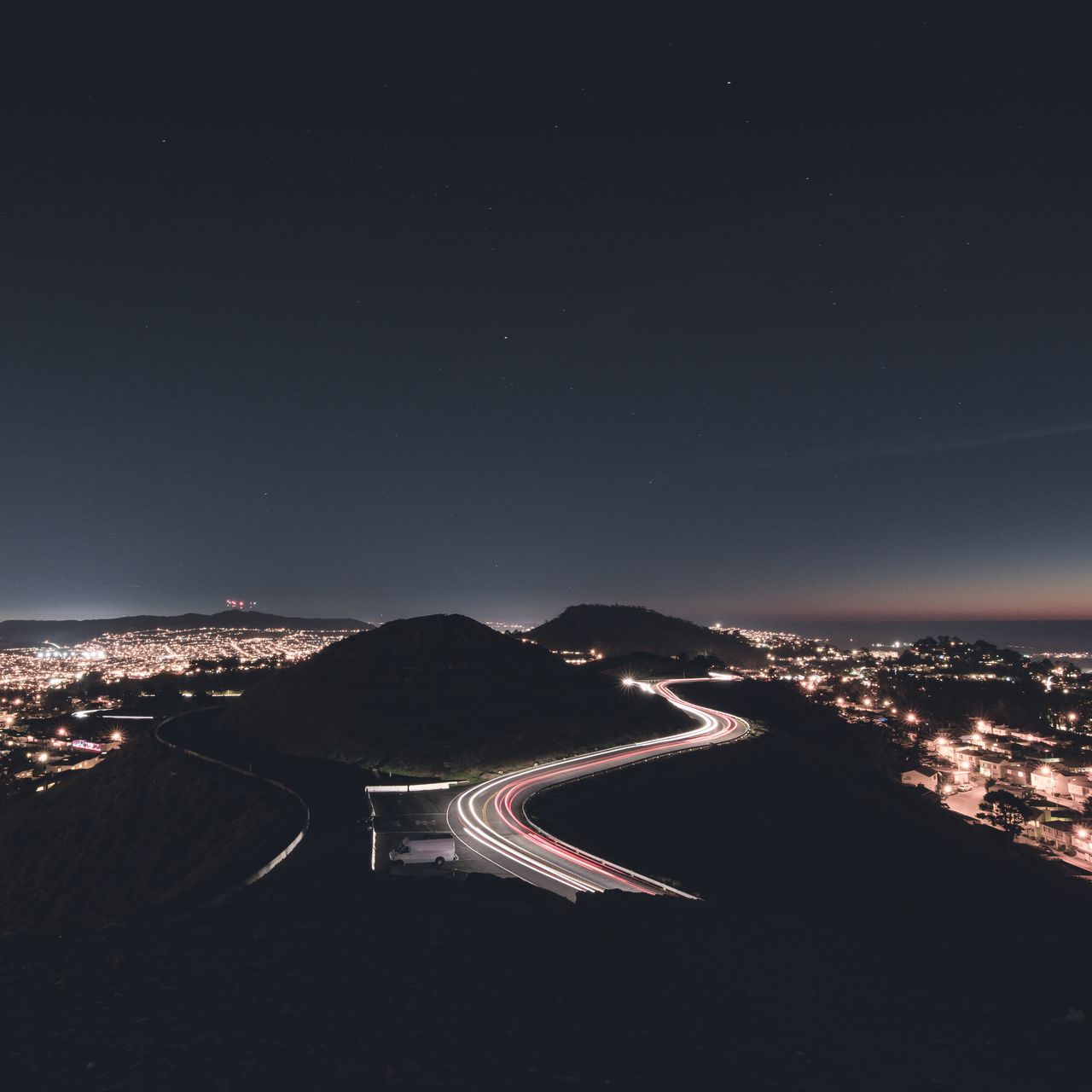Download 1280x1280 hills, road, freezelight, night, lights wallpaper, background ipad, ipad 2, ipad mini for parallax