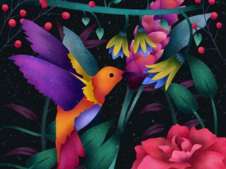 Download 320x240 hummingbird, bird, art, flowers wallpaper, background nokia e72, e71, asha, alcatel onetouch