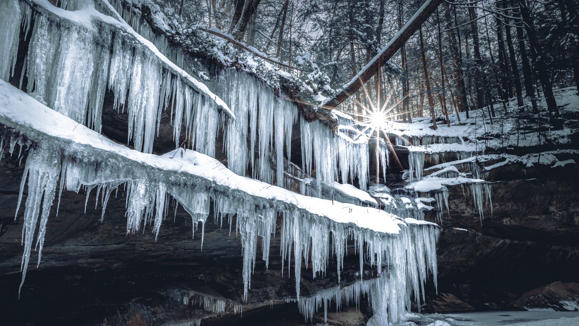 Download 1920x1080 icicles, ice, winter, sun wallpaper, background full hd, hdtv, fhd, 1080p