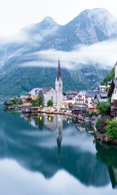 Download 240x400 lake, mountains, village, hallstatt, austria wallpaper, background nokia asha 311, samsung galaxy 580, omnia, lg kp500
