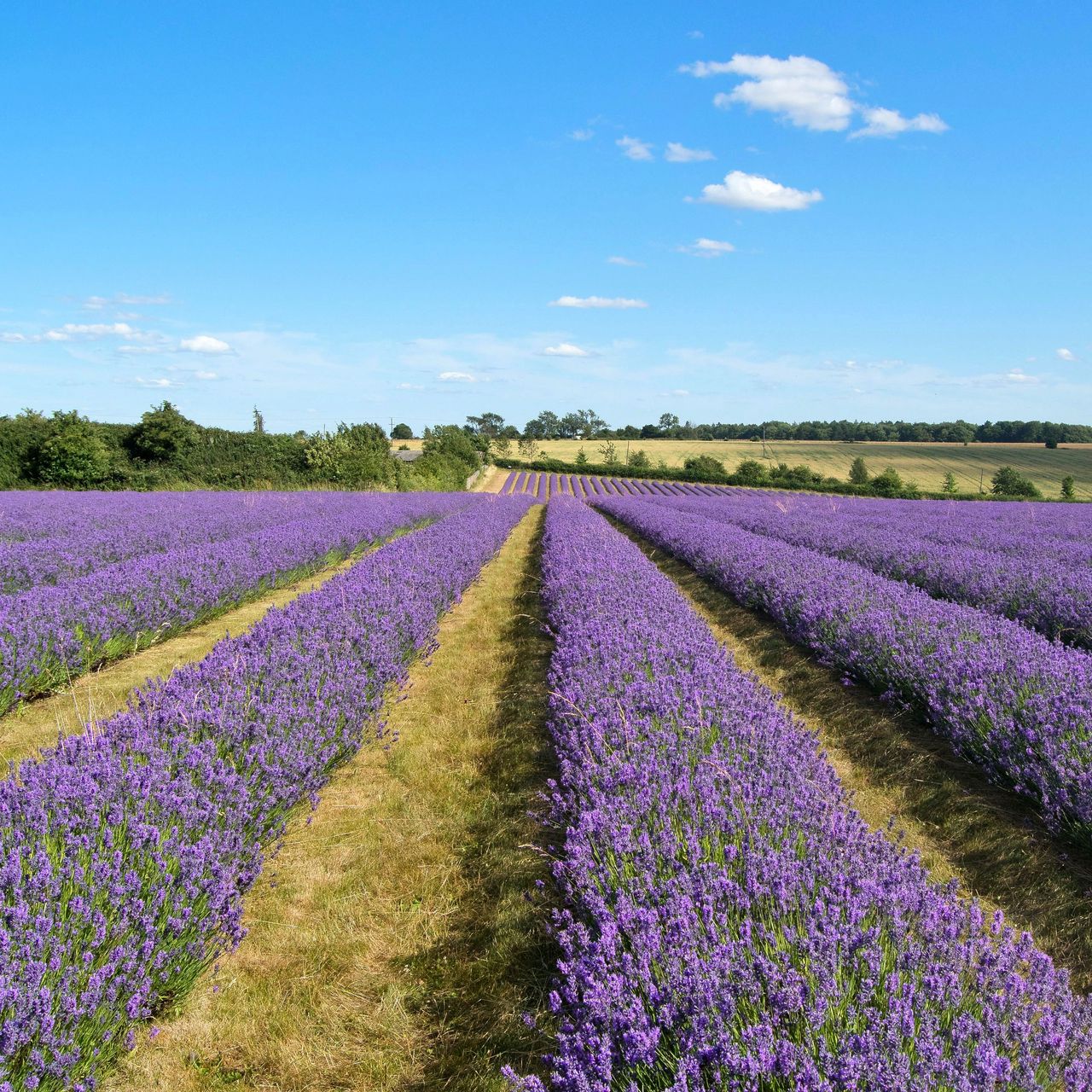 Download 1280x1280 lavender, field, flowers, bushes, clouds, landscape wallpaper, background ipad, ipad 2, ipad mini for parallax