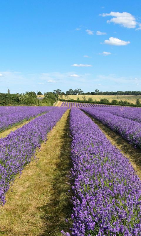 Download 480x800 lavender, field, flowers, bushes, clouds, landscape wallpaper, background nokia x, x2, xl, 520, 620, 820, samsung galaxy star, ace, asus zenfone 4