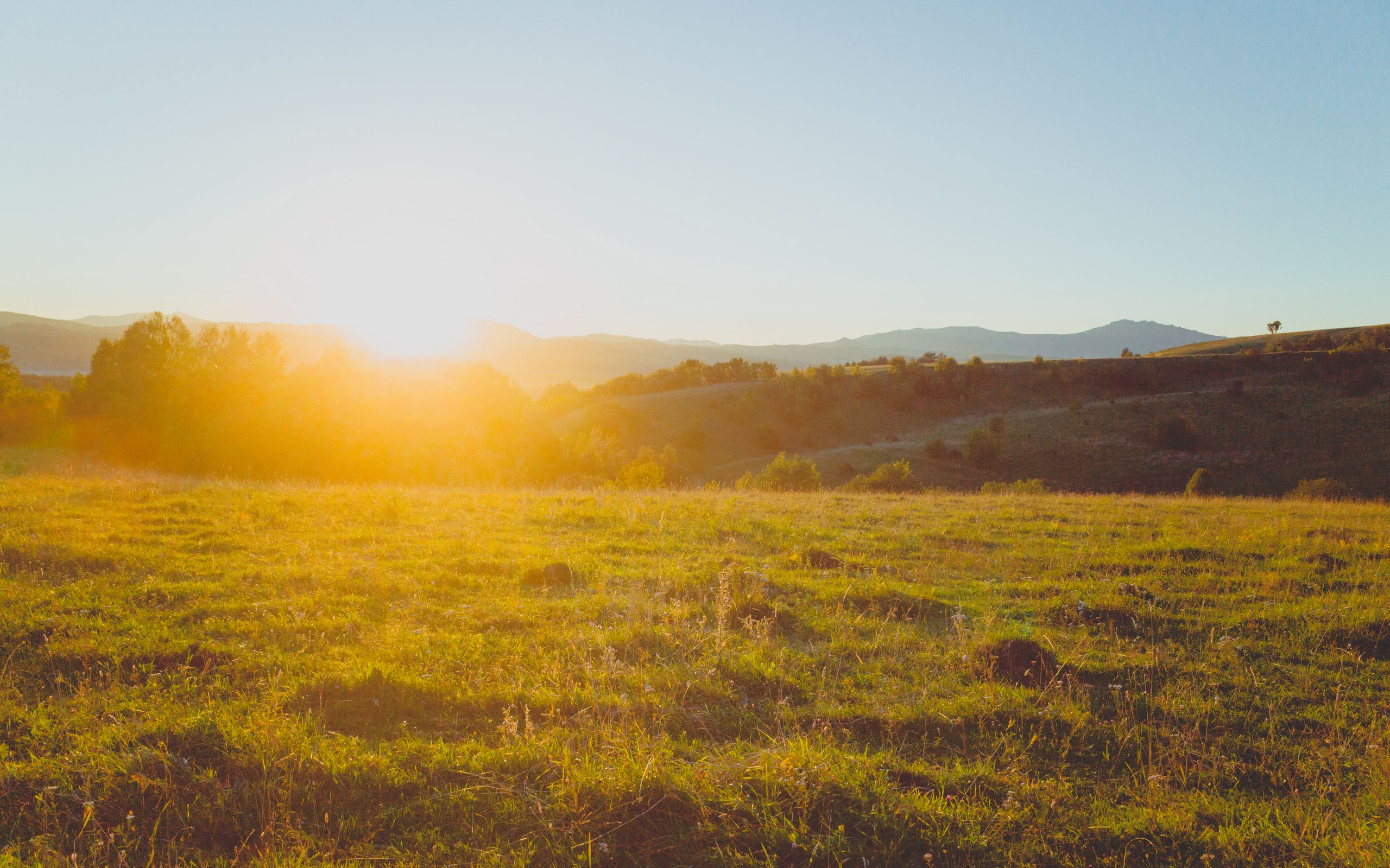 Download 2560x1600 lawn, hills, sunlight, bright, landscape wallpaper, background widescreen 16:10
