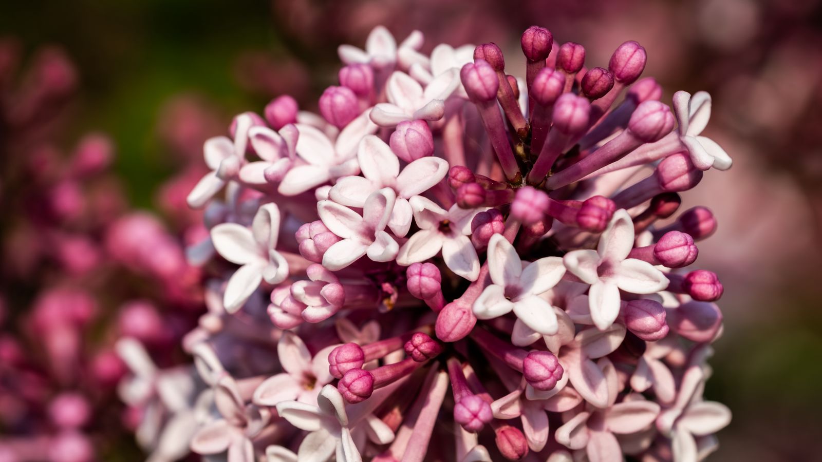 Download 1600x900 lilac, flowers, petals, plant, purple, macro wallpaper, background widescreen 16:9