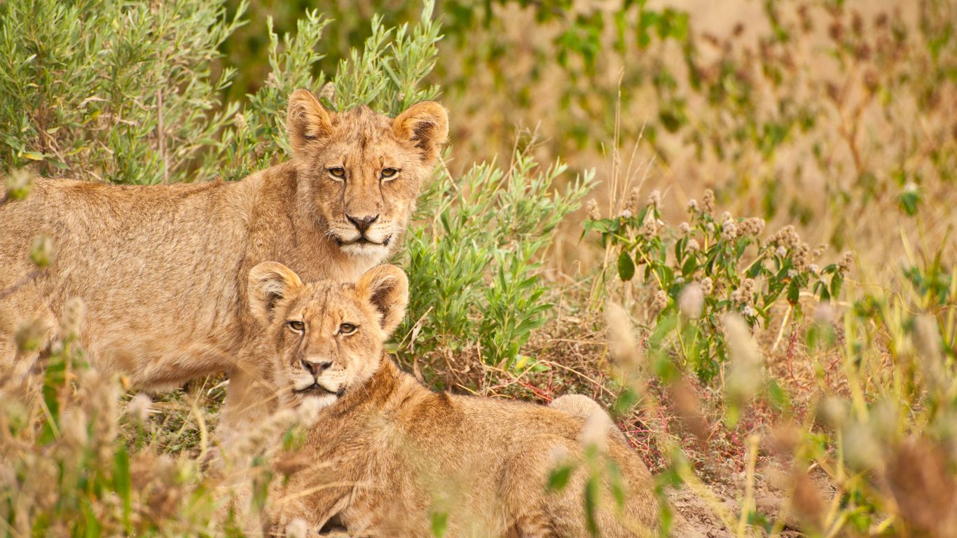 Download 1366x768 lions, family, animals, wildlife wallpaper, background tablet, laptop