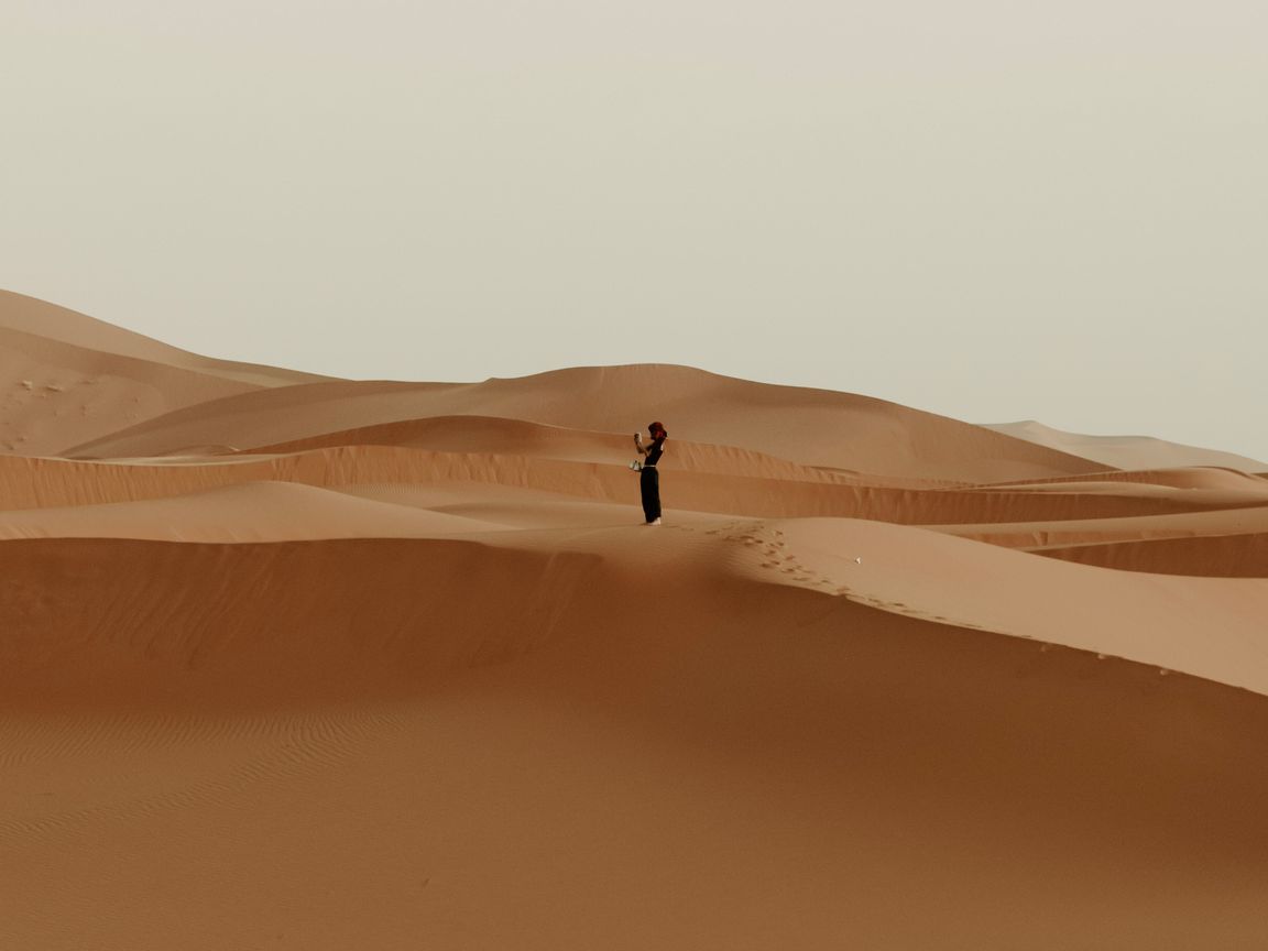 Download 1152x864 lonelines, alone, sdesert, dunes, girl wallpaper, background standard 4:3