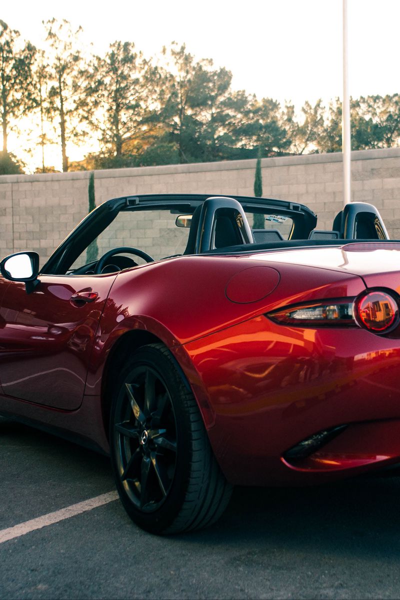 Download 800x1200 mazda mx-5 miata, mazda, car, red, back view wallpaper, background iphone 4s/4 for parallax