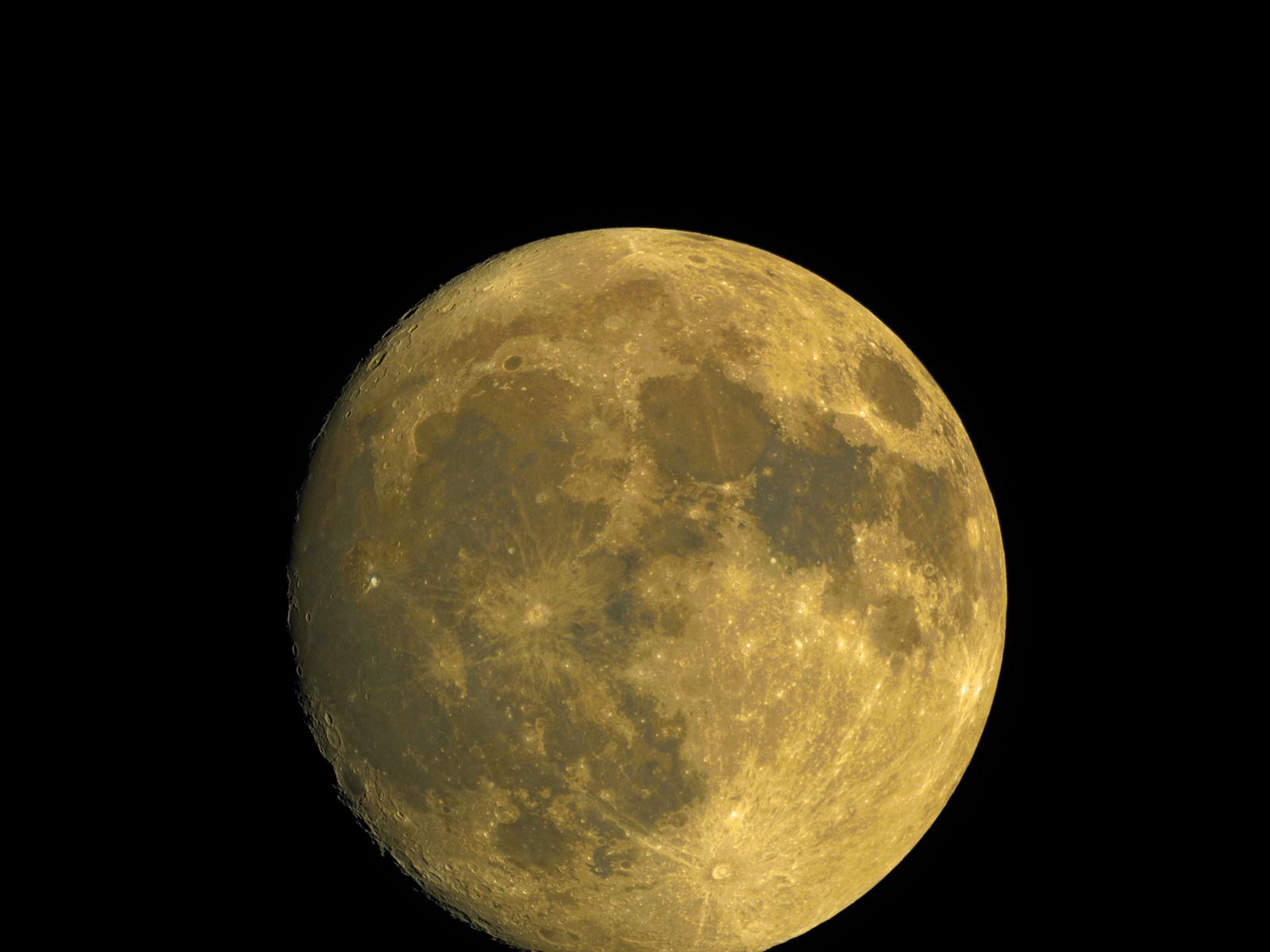Download 1600x1200 moon, satellite, craters, yellow, space wallpaper, background standard 4:3