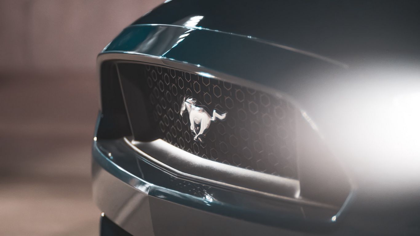 Download 1366x768 mustang, car, emblem, light, headlight wallpaper, background tablet, laptop