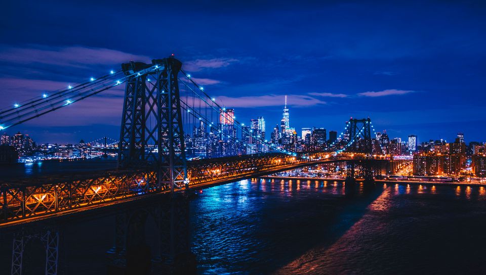 Download 960x544 new york, usa, night city, bridge wallpaper, background playstation ps vita